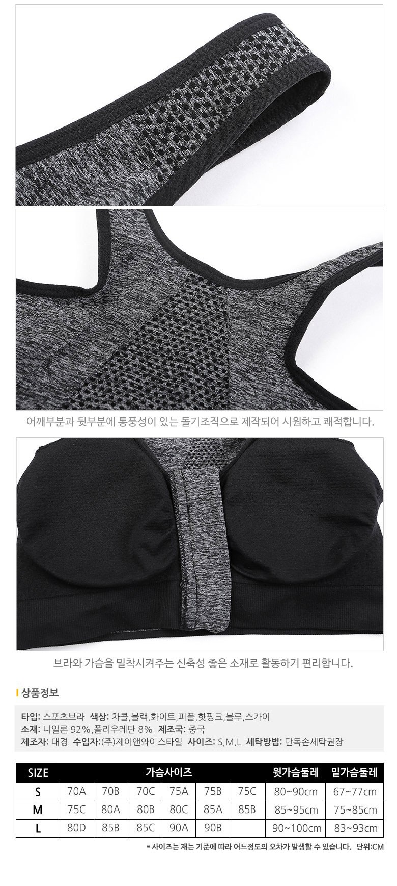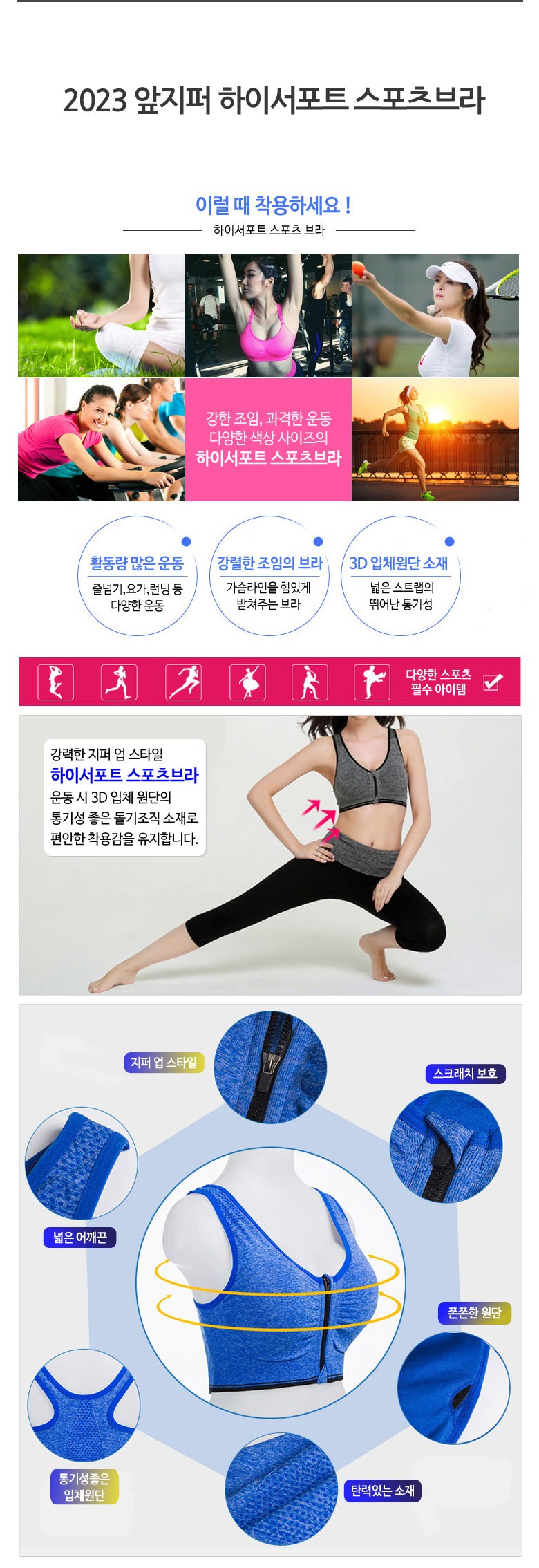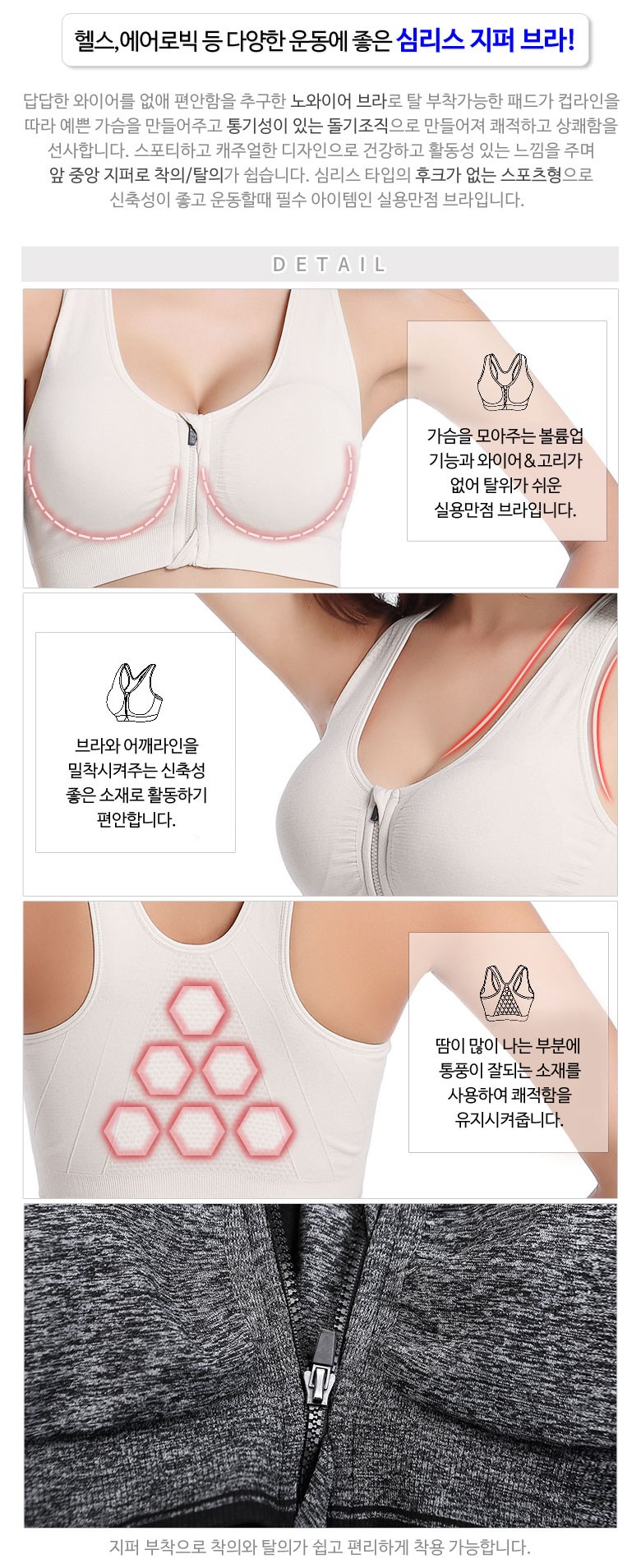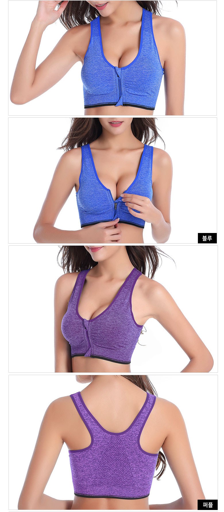 - 스포츠브라 디자인: 앞지퍼