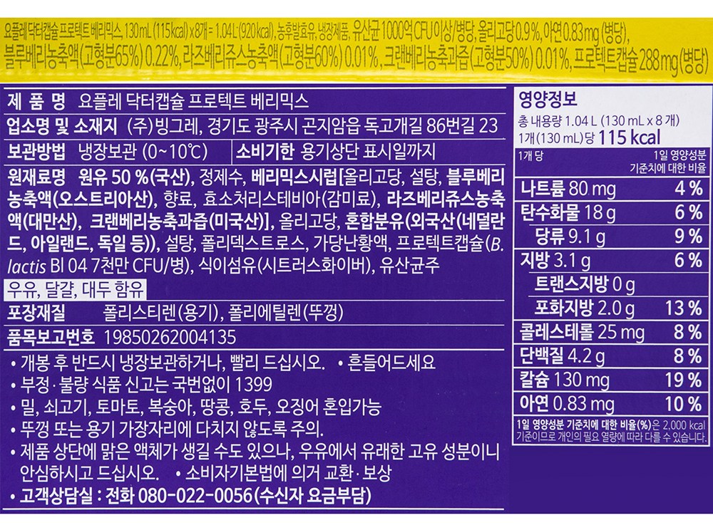 | 제품명 | 요플레 닥터캡슐 프로텍트 베리믹스 | 식품의 유형 | 농후발효유 |