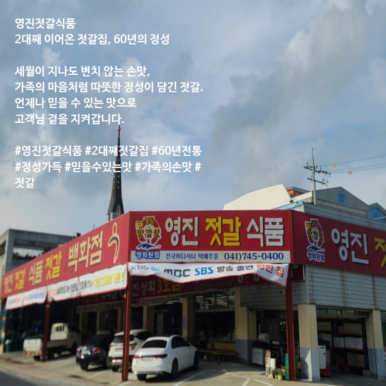 상호/대표자 | 영진젓갈식품 / 김태경 | 사업장 소재지 | 충청남도 논산시 강경읍 계백로167번길 4 영진젓갈식품 |