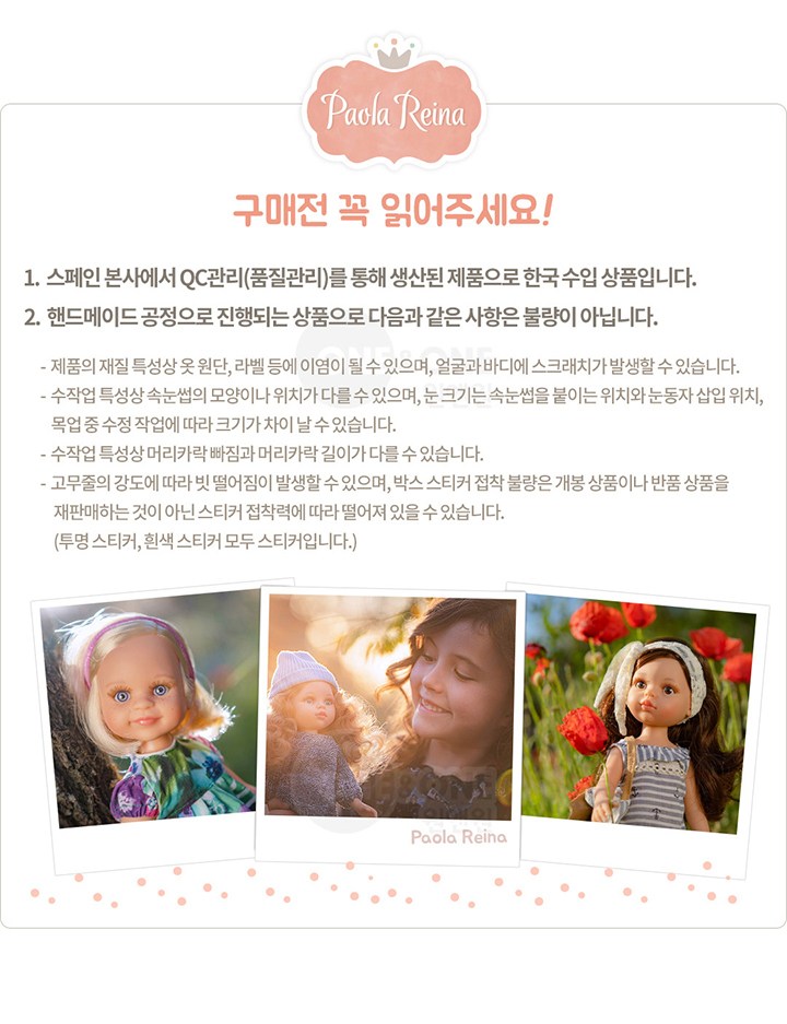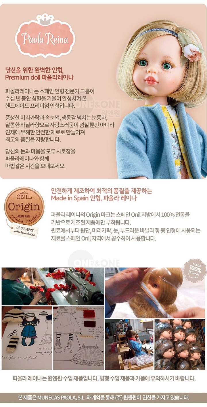| 제조국(원산지) | 스페인 | 제조자(수입자) | MUNECAS PAOLA, S.L . / (주)원앤원 |
