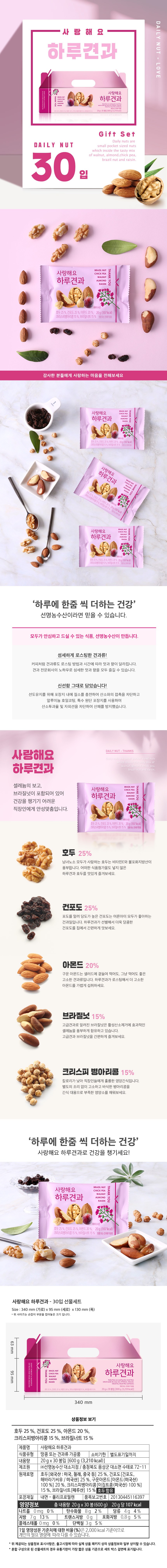 | 제품명 | 사랑해요 하루견과 | 식품의 유형 | 컨텐츠 참조 |