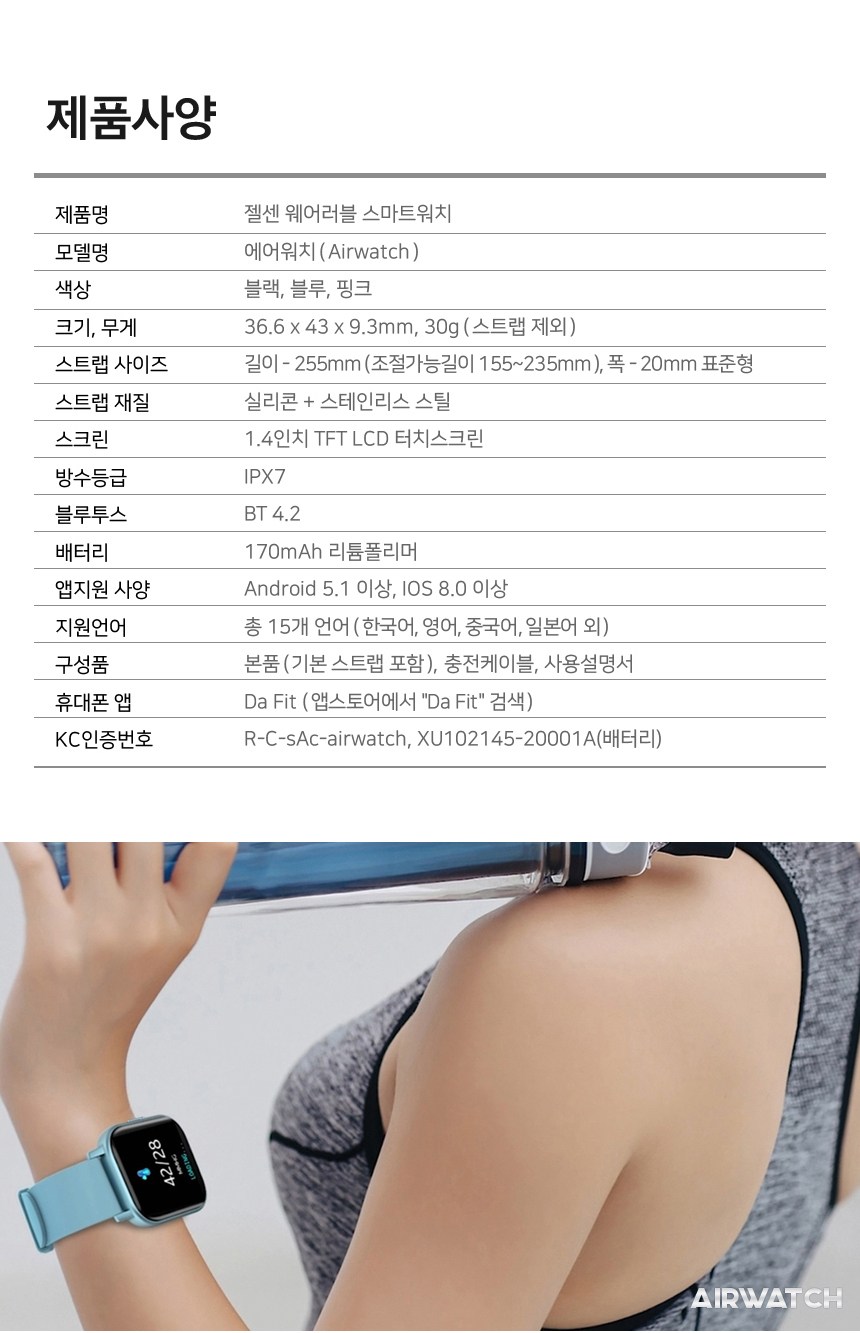 | 품명 및 모델명 | airwatch | KC 인증정보 | 본품: R-C-sAc-airwatch, 배터리: XU102145-20001A |