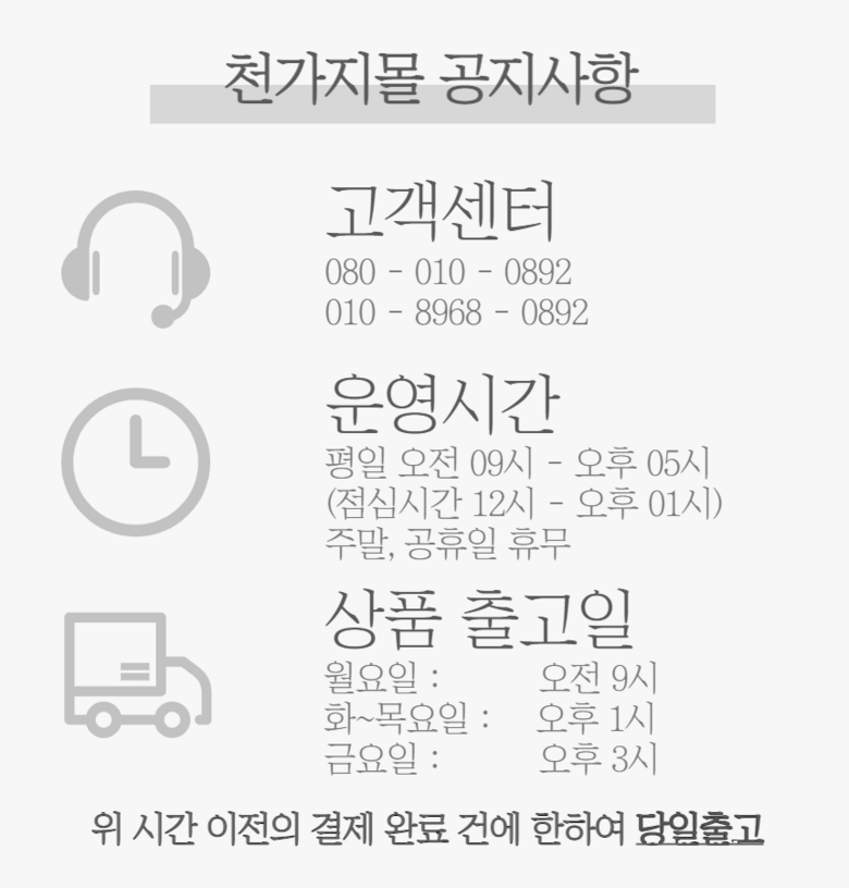 - ㆍ모니터 해상도의 차이로 인해 색상이나 이미지가 실제와 달라, 고객이 단순 변심으로 교환/반품을 무료로 요청하는 경우
