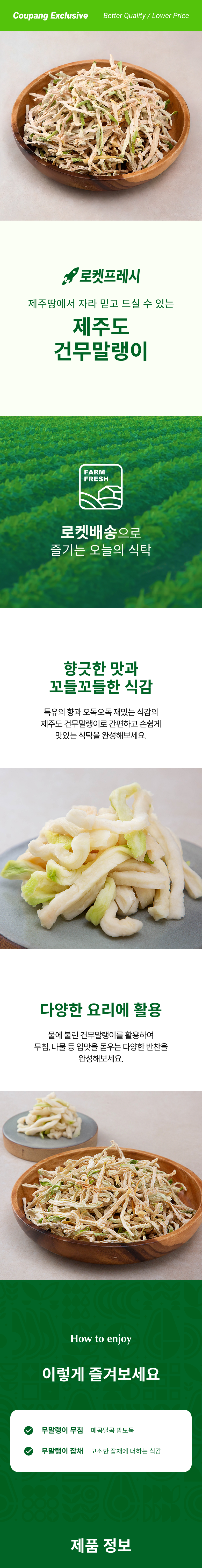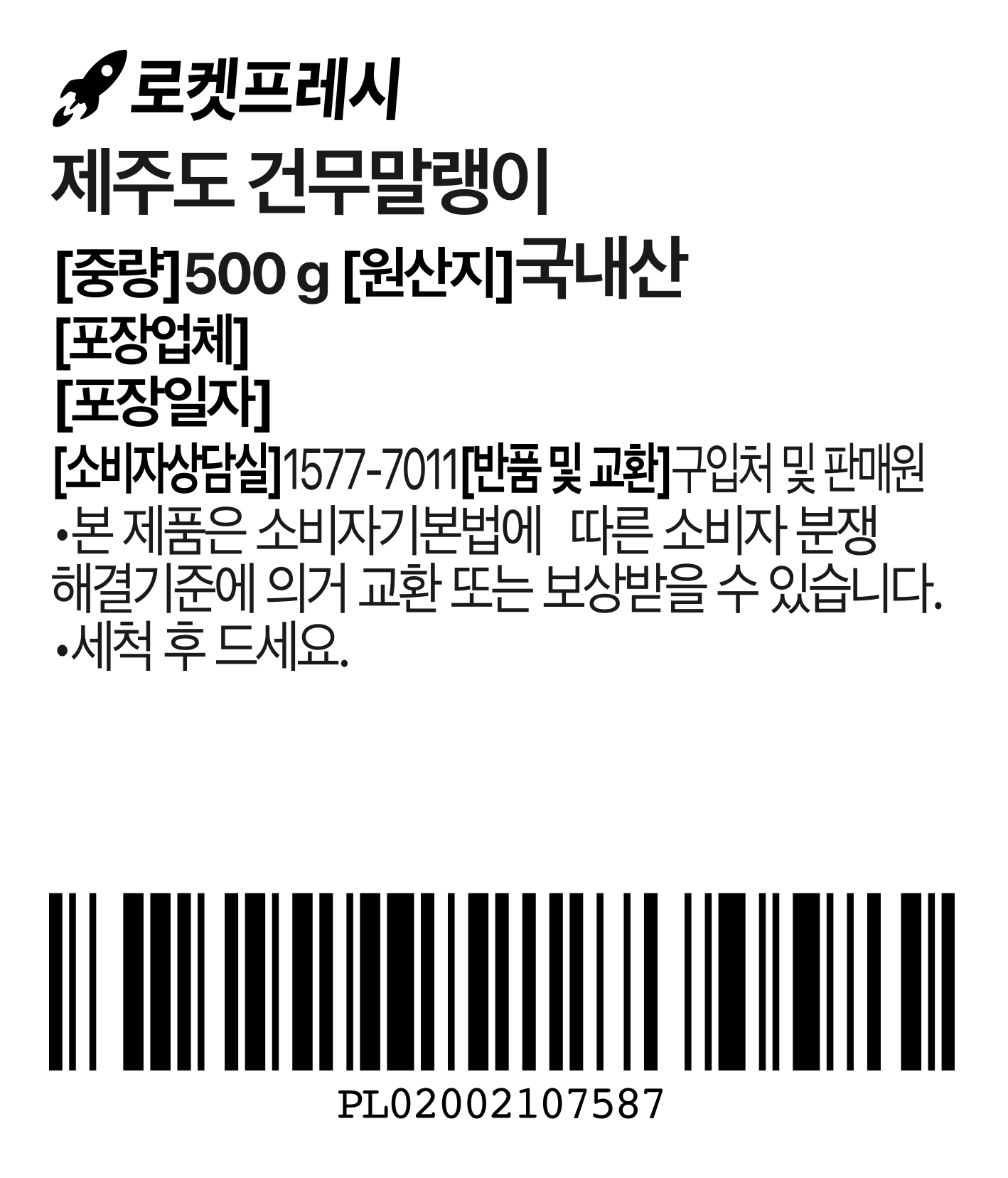 | 품목 또는 명칭 | 제주도 건무말랭이 | 포장단위별 내용물의 용량(중량),수량,크기 | 500g x 4봉,1개 |