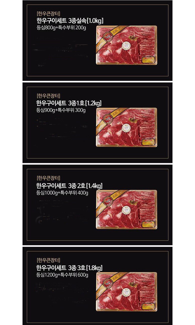 - 한우 추천구이 선물세트 3종실속 [1.0kg]: 1세트