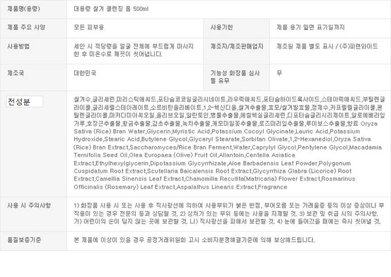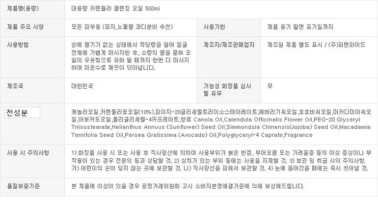 - 구성품: 쌀겨 클렌징 폼 500ml + 카렌듈라 클렌징 오일 500ml