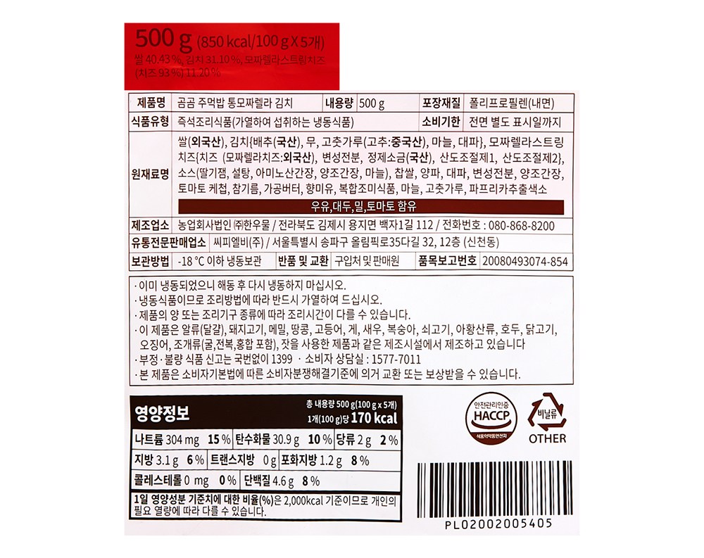 | 포장단위별 내용물의 용량(중량), 수량 | 500g x 3개,1개 | 원재료명 및 함량 | 컨텐츠 참조 |