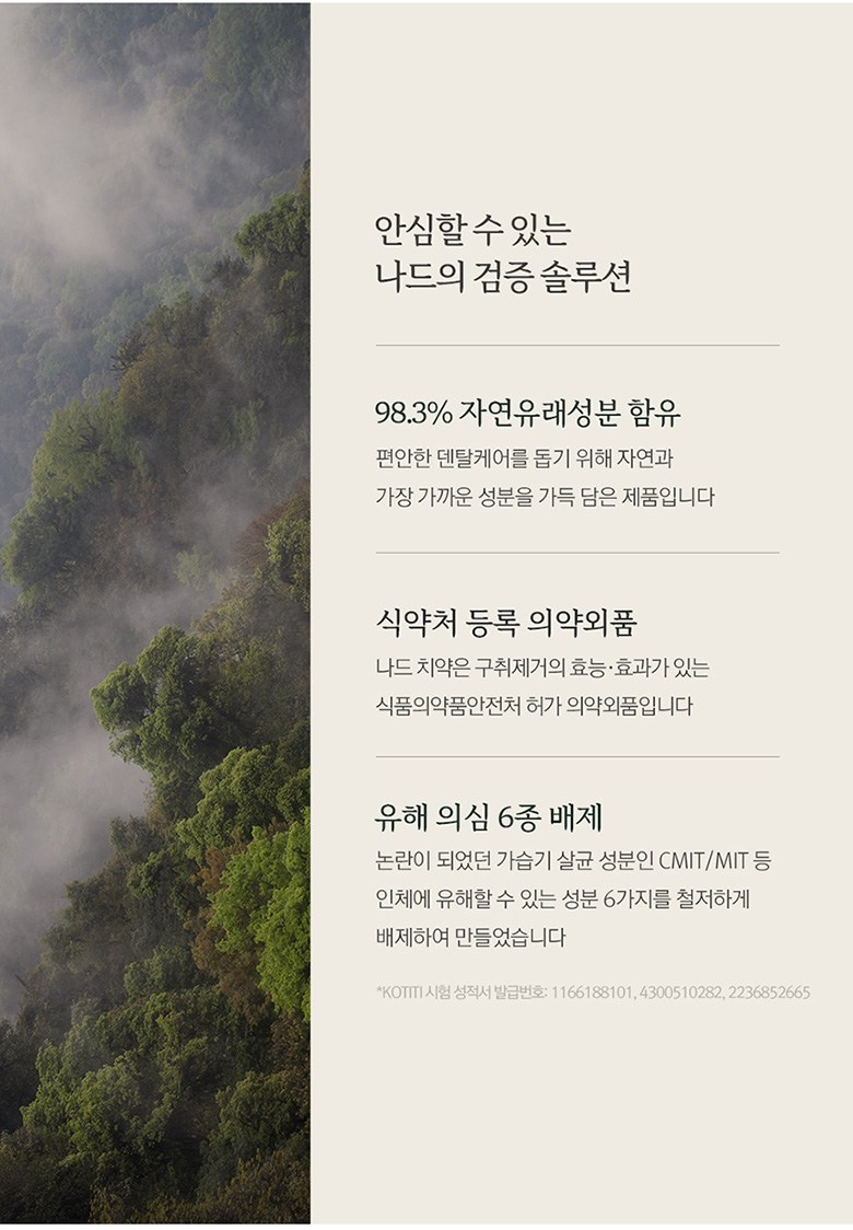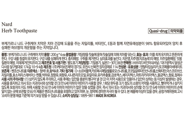 | 품명 및 모델명 | 부케가르니나드구취케어치약 | 인증/허가 사항 | 의약외품 |
