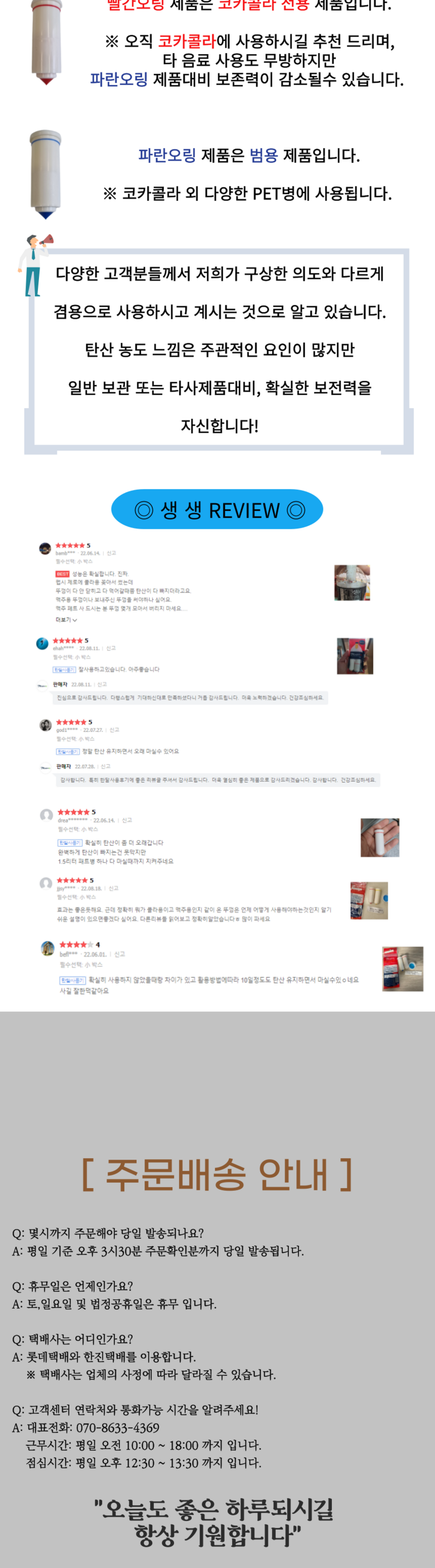 - 상품문의 및 후기게시판을 통해 취소나 환불, 반품 등은 처리되지 않습니다.