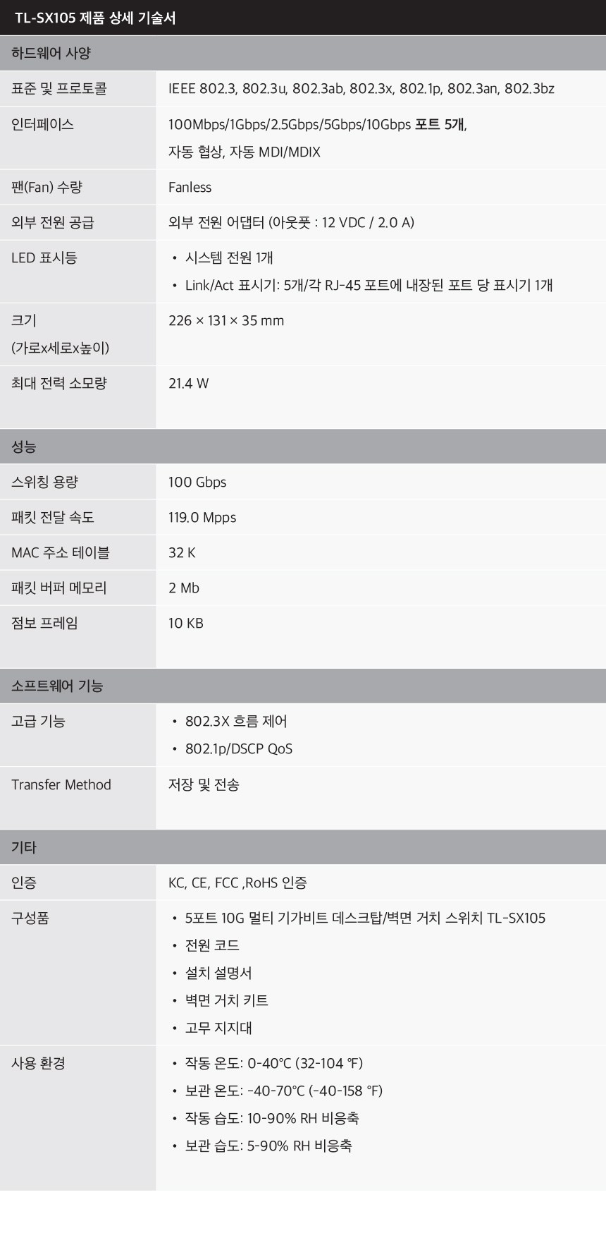 | 품명 및 모델명 | TL-SX105 | KC 인증정보 | 본품: R-R-TPN-TL-SX105, 전원장치: JU10176-17001 |