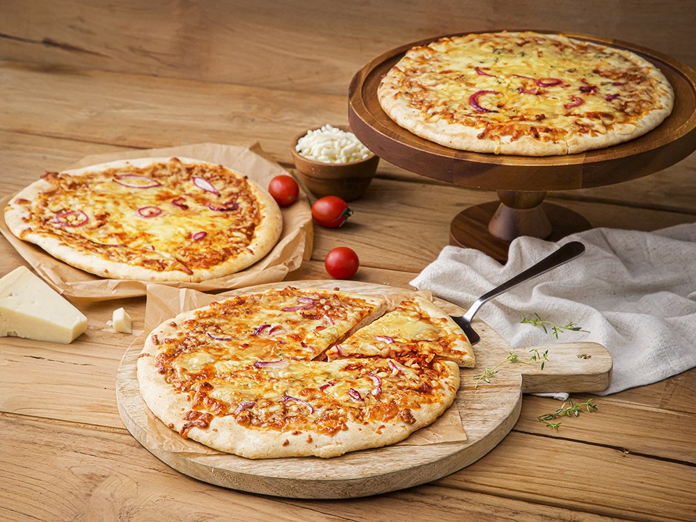 상자 안에 총 3개의 피자가 들어 있습니다. 맛있는 피자를 넉넉하게 즐겨보세요.