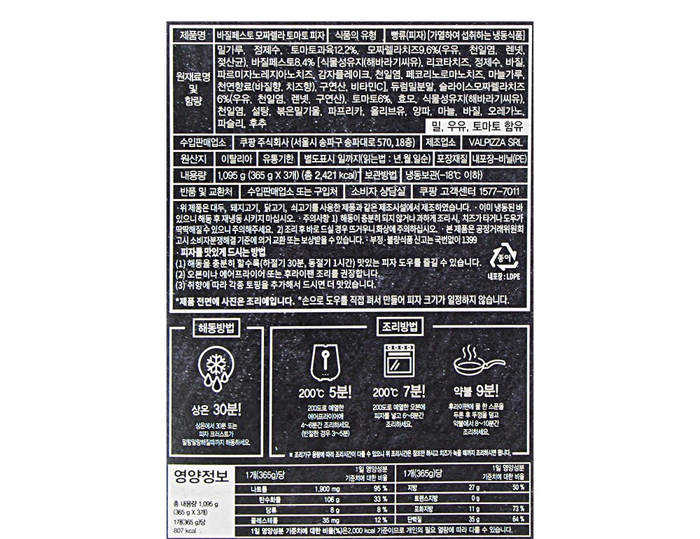 200℃로 예열한 오븐에 피자를 넣고 6~8분간 조리해주세요.