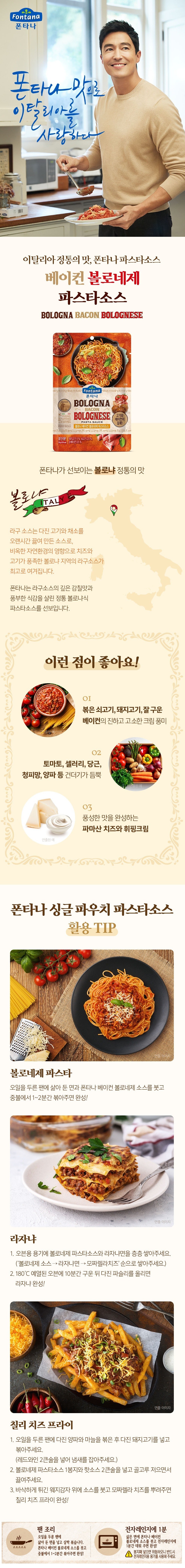 제품명 | 폰타나 볼로냐 베이컨 볼로네제 파스타소스 | 식품의 유형 | 컨텐츠 참조 |