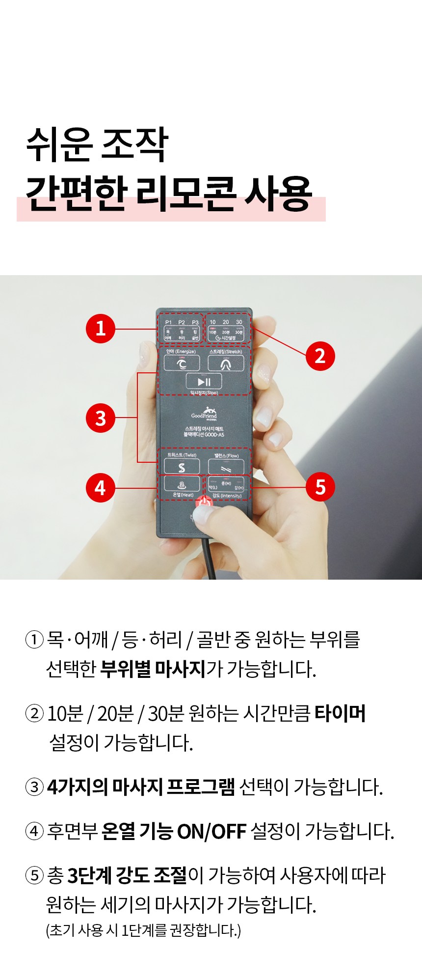 - 강도 조절: 강도 조절 가능
