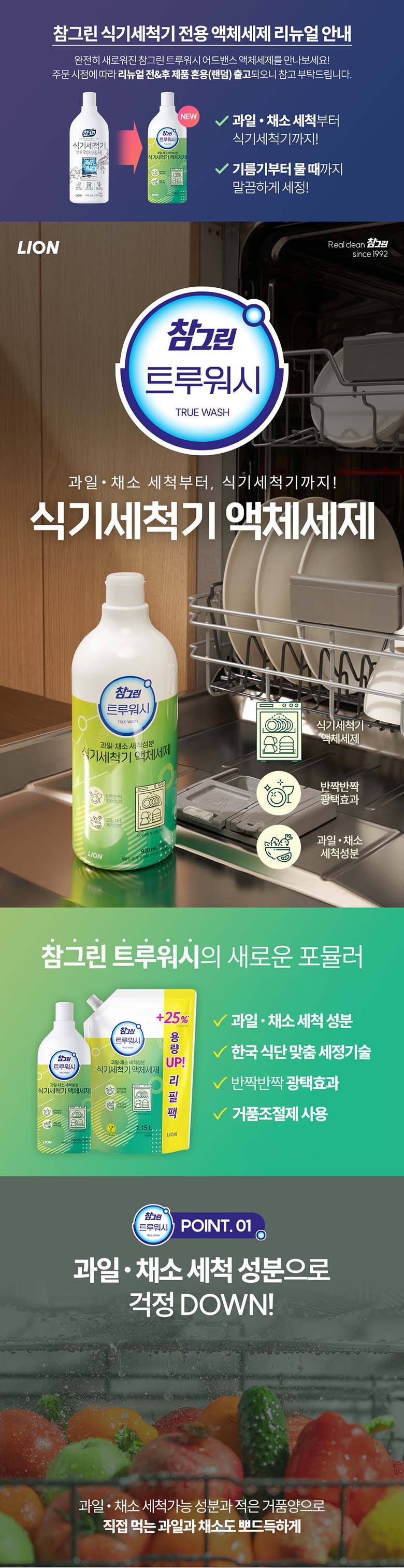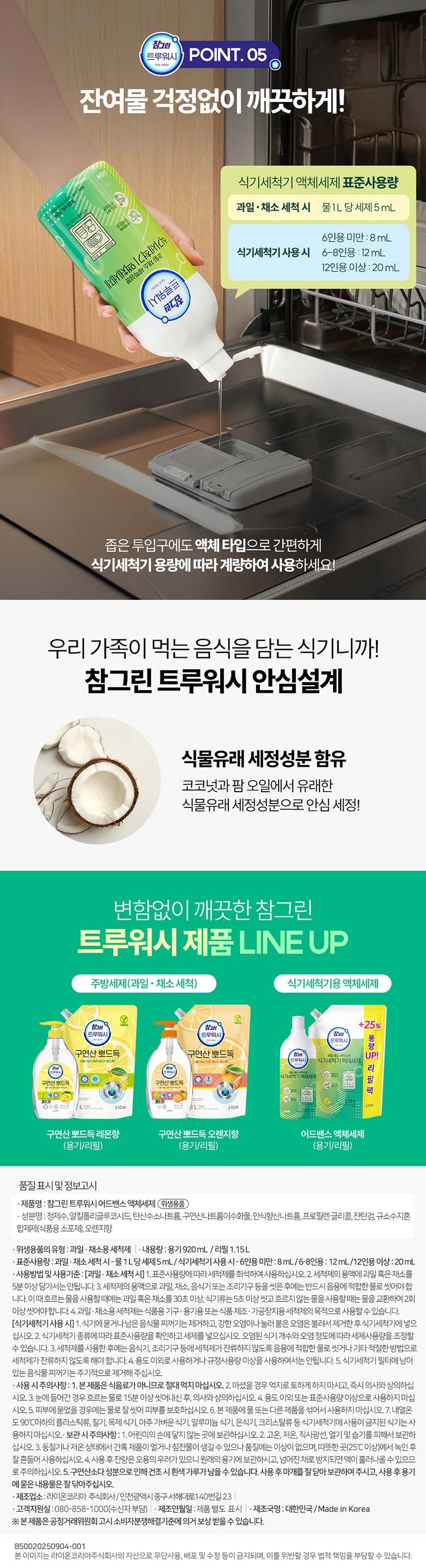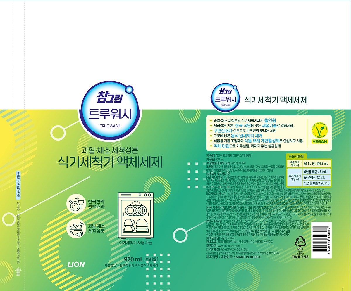 | 품명 및 모델명 | 리뉴얼 전 : 참그린 식기세척기 전용 액체세제, 리뉴얼 후 : 참그린 트루워시 어드밴스 액체세제 | 인증/허가 사항 | 위생용품 |