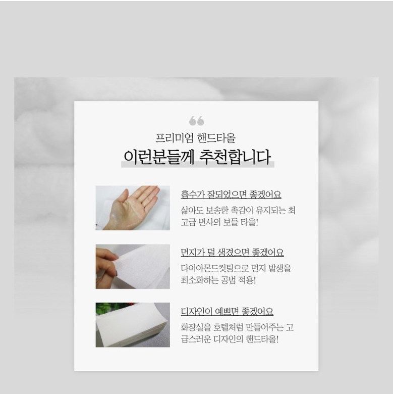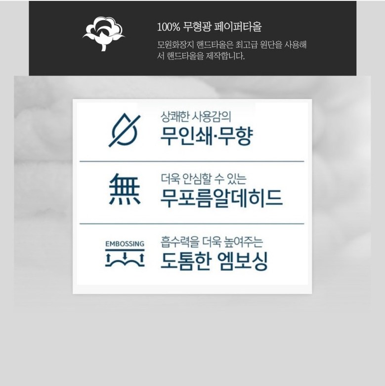 | 품명 및 모델명 | 무형광 핸드타올 | 인증/허가 사항 | 상품 상세페이지 참조 |