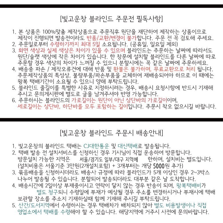 | 치수 | 상세페이지 참조 | 제품구성 | 블라인드, 설치설명서, 브라켓, 나사 |