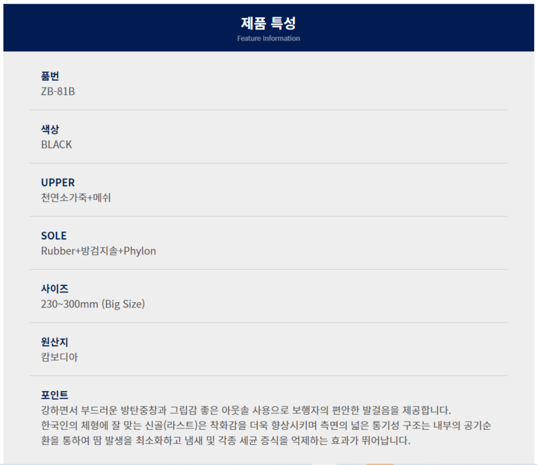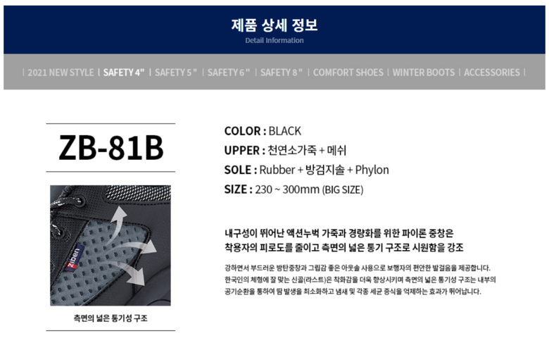 | 제품의 주소재(운동화인 경우에는 겉감,안감을 구분하여 표시) | 상품 상세페이지 참조 | 색상 | 상품 상세페이지 참조 |