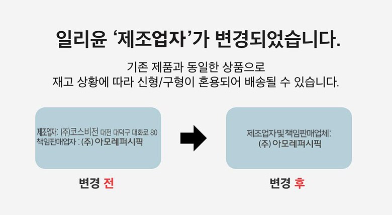 | 화장품제조업자, 화장품책임판매업자 및 맞춤형화장품판매업자 | (주)아모레퍼시픽 / (주)아모레퍼시픽 | 제조국 | 대한민국 |