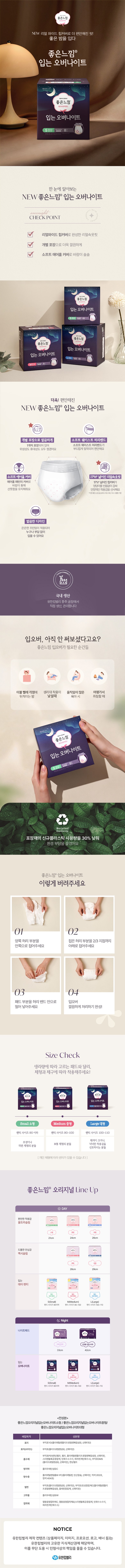 | 품명 및 모델명 | 좋은느낌오리지널입는오버나이트소형 | 인증/허가 사항 | 의약외품 |