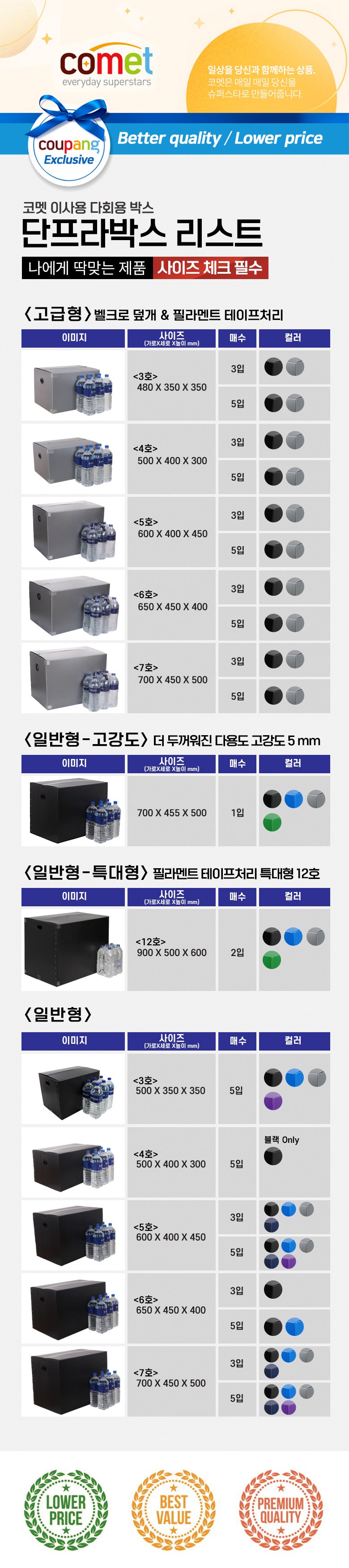 | 품명 및 모델명 | 코멧 이사박스 고급형 5호(600*400*450) 실버 5입 | 인증/허가 사항 | 해당없음 |