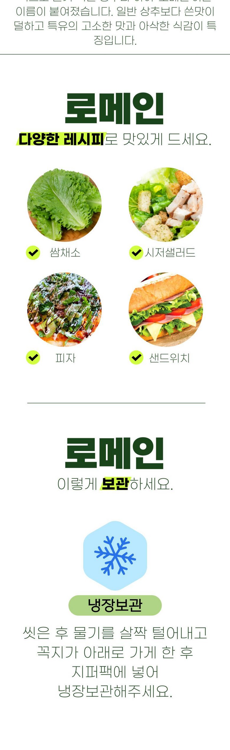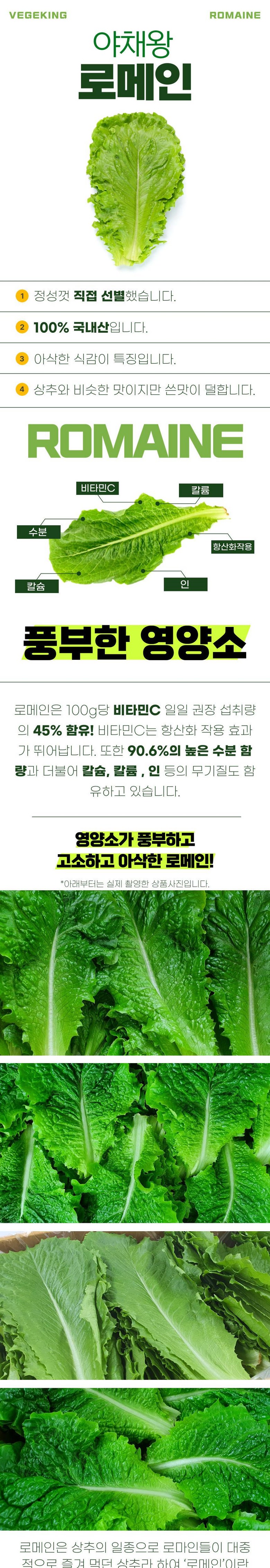 | 품목 또는 명칭 | 로메인 로메인 상추 잎 로메인 | 포장단위별 내용물의 용량(중량),수량,크기 | 1.8~2kg |