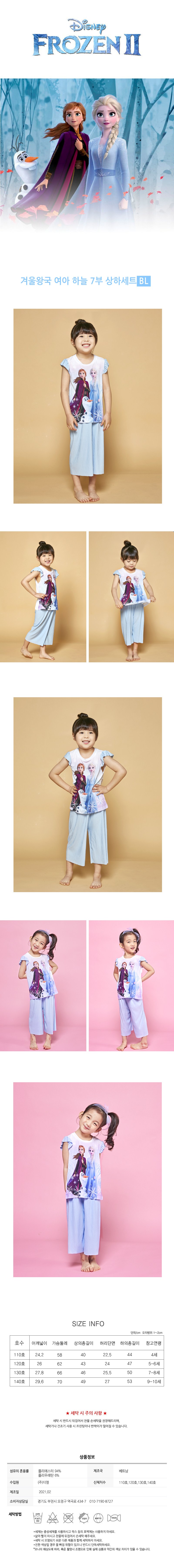 겨울왕국2 여아용 하늘 7부 실내복 상하 세트