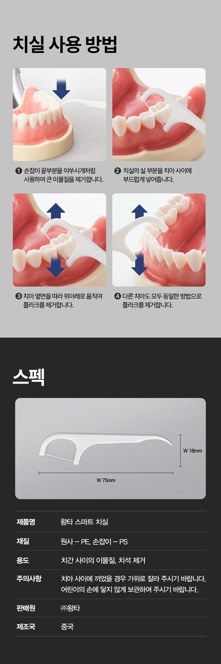 | 품명 및 모델명 | 왕타 스마트 치실 | 인증/허가 사항 | 해당 없음(14세 이상) |