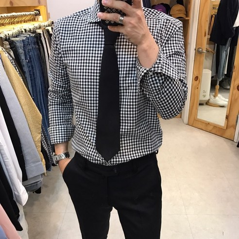 스트릿제이 체크 패턴 긴팔 남방 깅엄 캐주얼 와이셔츠 슬림핏 상의 셔츠
