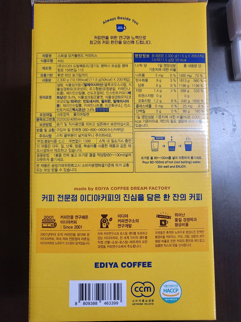 | 제품명 | 이디야 스페셜 모카블렌드 커피믹스 | 식품의 유형 | 컨텐츠참조 |