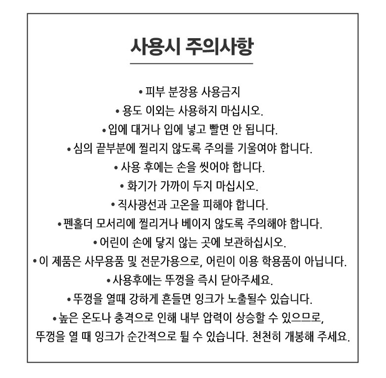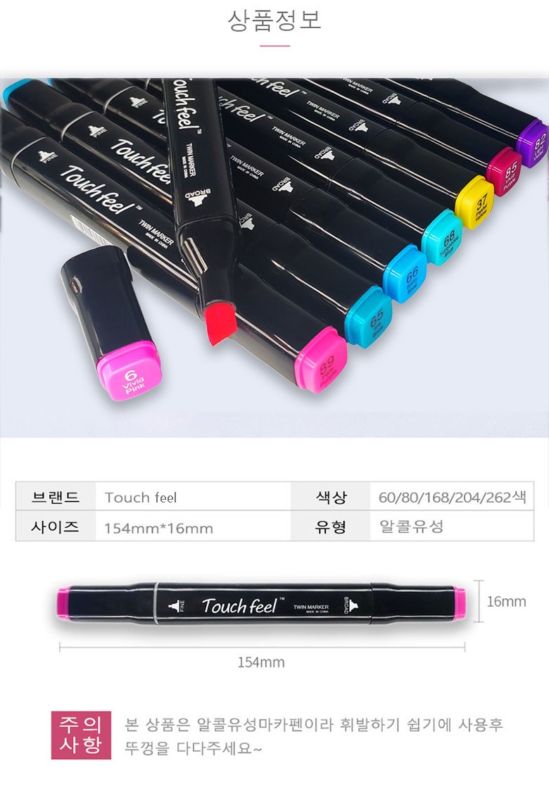 | 품명 및 모델명 | 터치필 더블헤드 알콜유성 마카펜 애니메이션용 | 인증/허가 사항 | 해당없음(14세 이상) |
