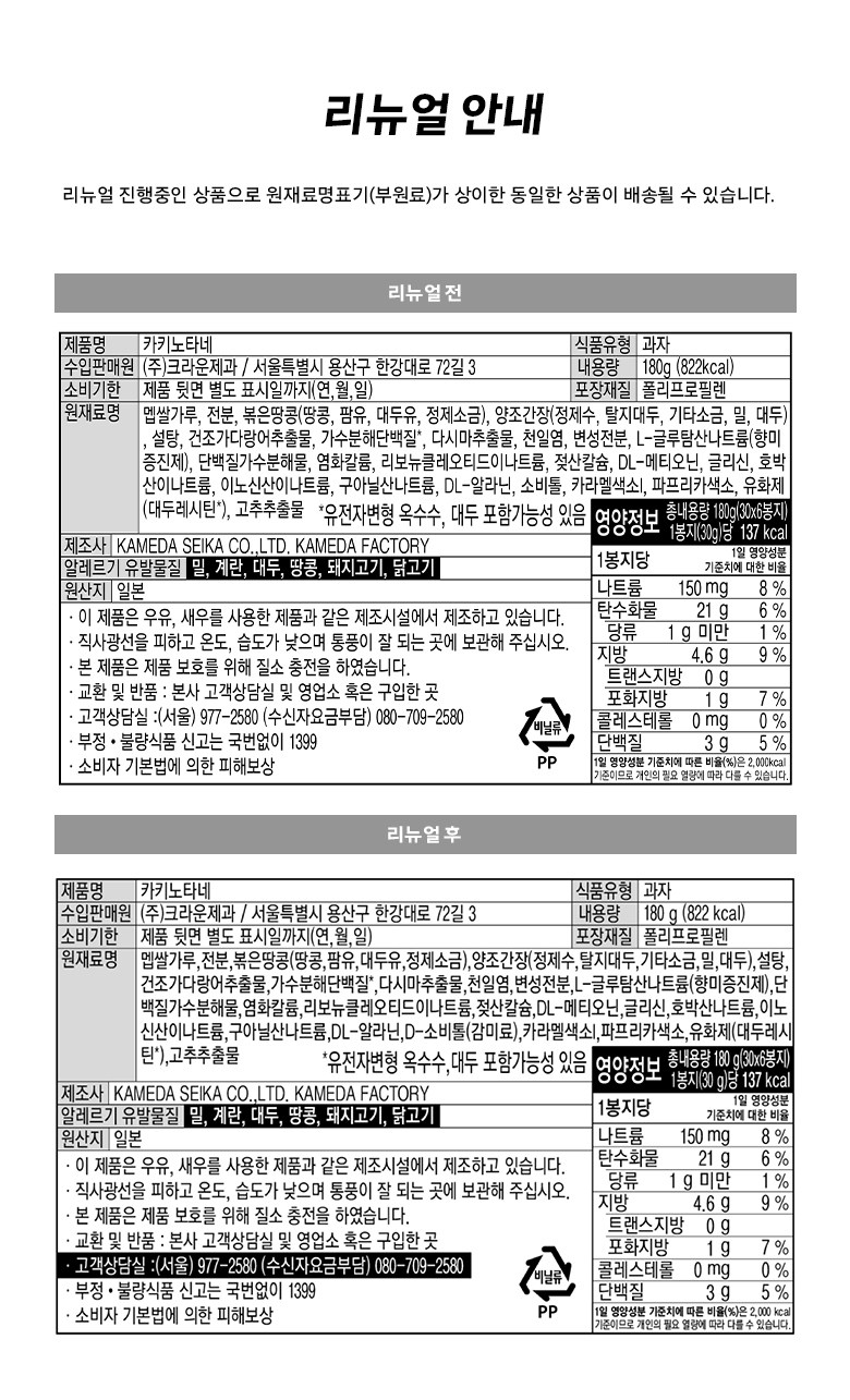 | 포장단위별 내용물의 용량(중량), 수량 | 컨텐츠 참조 | 원재료명 및 함량 | 컨텐츠 참조 |