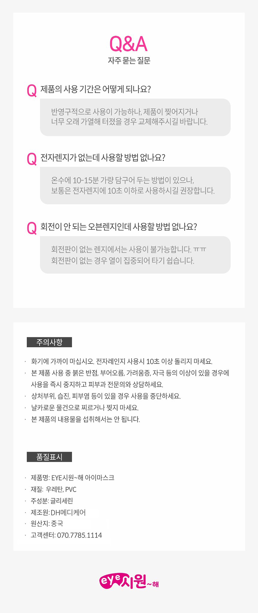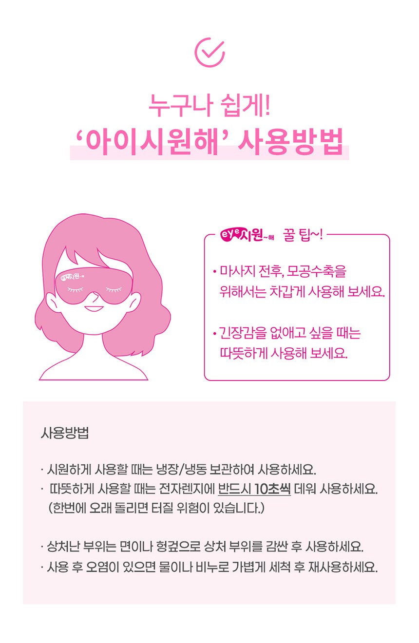 | 품명 및 모델명 | DH메디케어 아이시원해 아이마스크 핑크 | 인증/허가 사항 | 해당없음 |