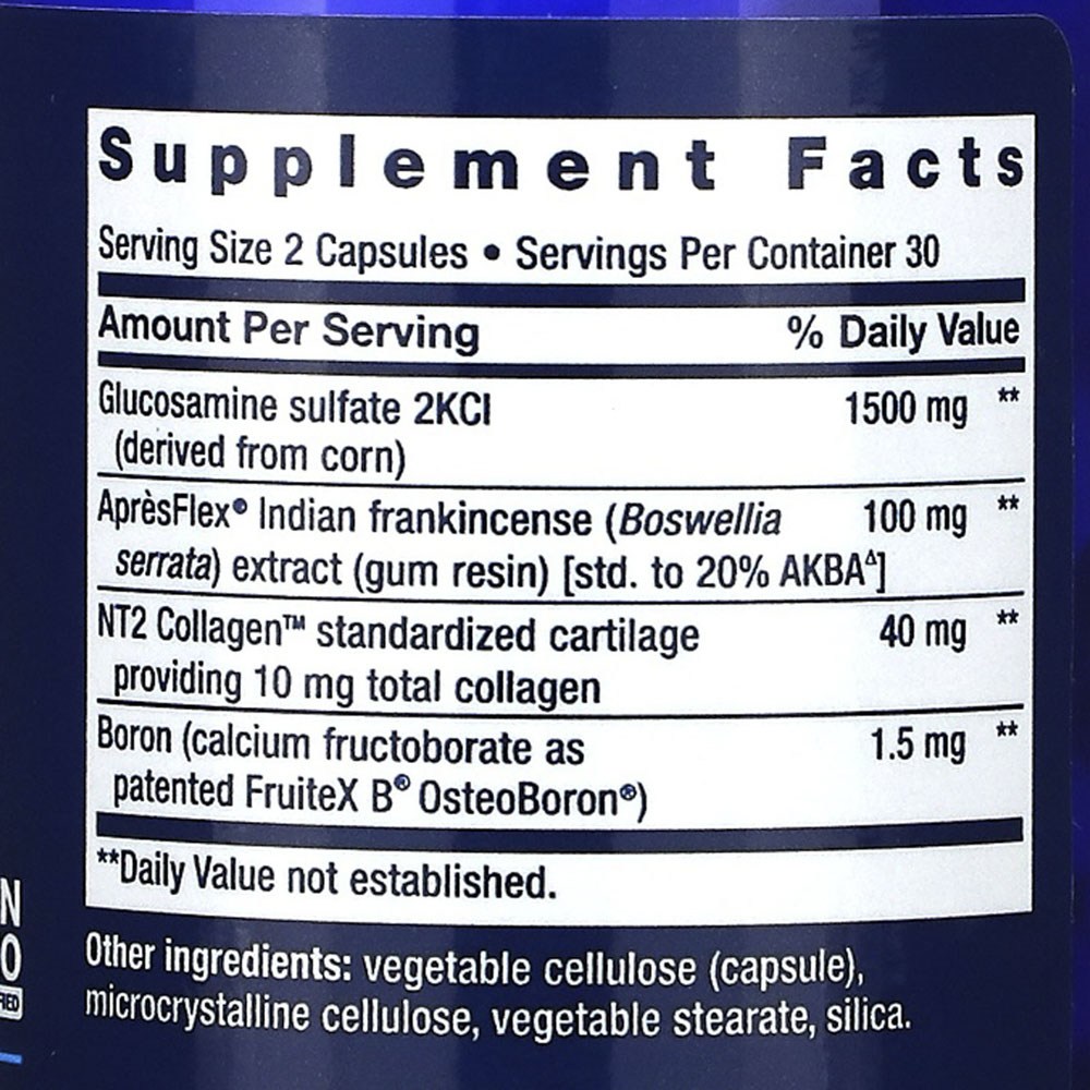 관절의 건강함과 편안함, 연결 조직을 위한 집중 영양소를 담은 식이 보충제입니다. 글루코사민과 보스웰리아 추출물, 콜라겐 등이 함유되어 있습니다. 글루텐 프리이며 Non-GMO 제품입니다.