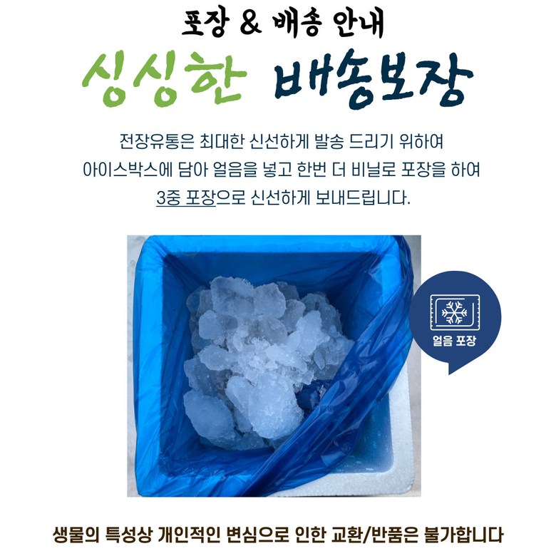 | 배송방법 | 신선/냉장/냉동 | 배송비 | 무료배송 - 도서산간 지역 배송불가 |