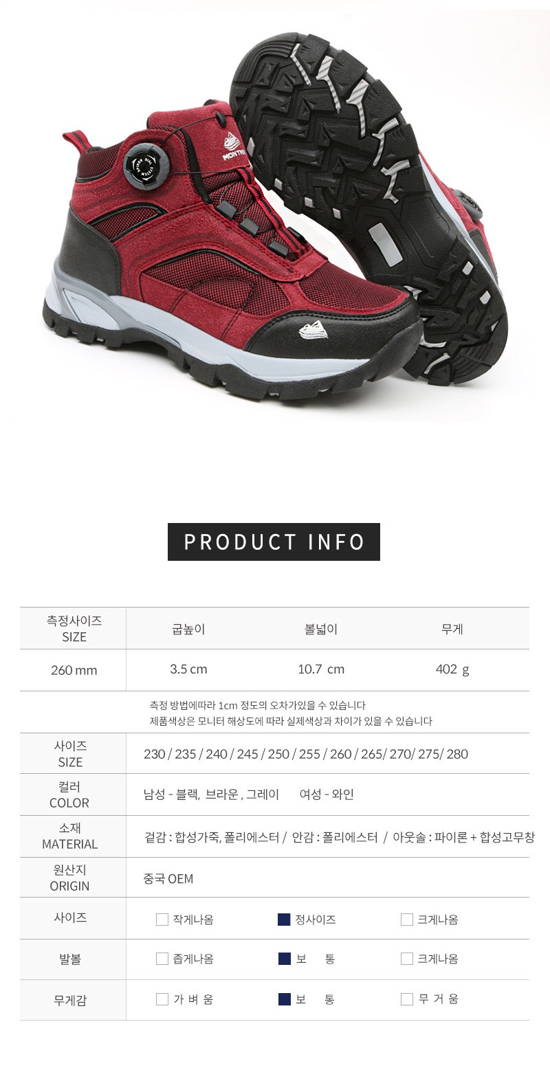 - 발목높이: 하이탑