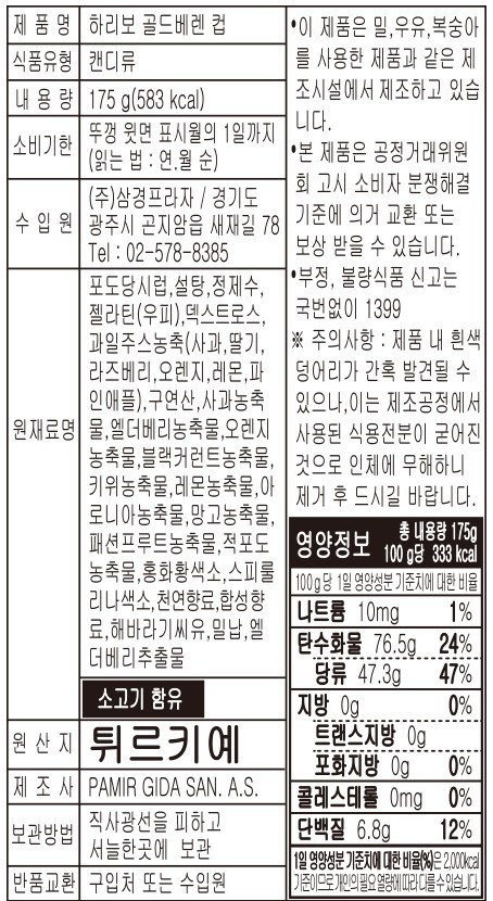 | 제품명 | 컨텐츠 참조 | 식품의 유형 | 컨텐츠 참조 |