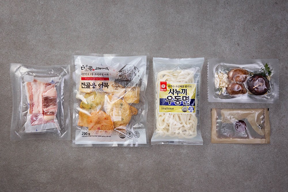 뜨끈한 국물로 속을 달래주는 우동전골을 간편하게 조리해보세요. 다채로운 종류의 고래사어묵을 동봉해 풍성한 요리를 즐기실 수 있지요. 쫄깃쫄깃한 우삼겹은 전골에 부드럽고 고소한 맛을 더한답니다.