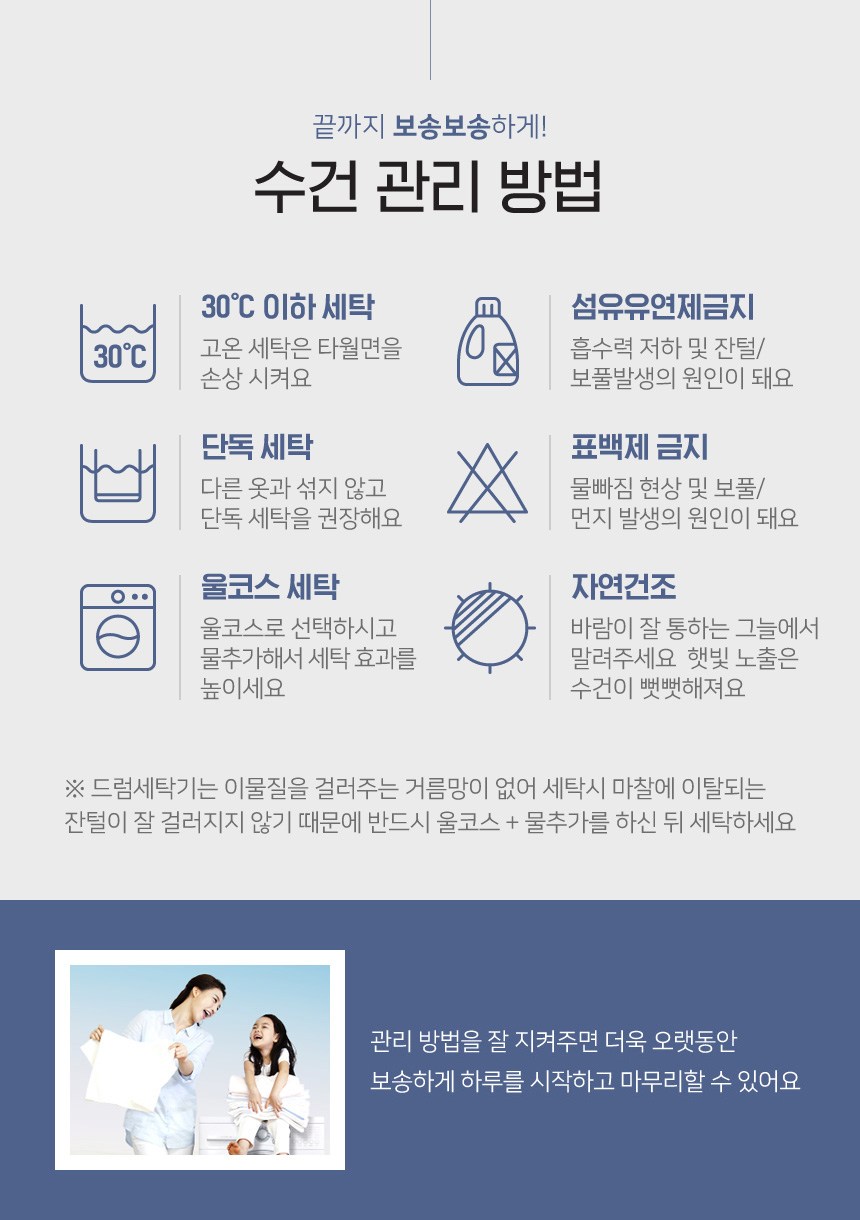 | 제조국(원산지) | 대한민국 | 제조자(수입자) | (주)타월톡톡 |