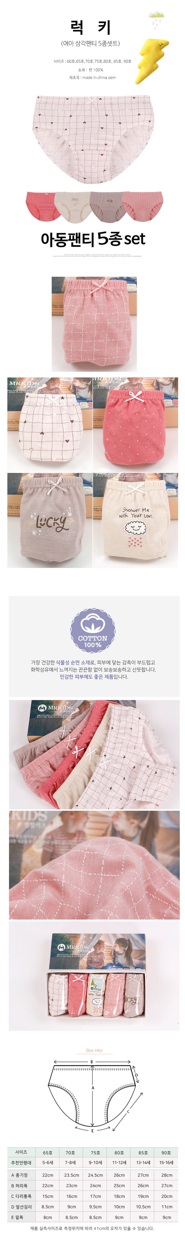 | 품명 및 모델명 | [행복한쇼핑몰] 여아용팬티 5p세트 럭키 5종팬티셋트_여/85호 | KC 인증정보 | CB014R1379-0001 |