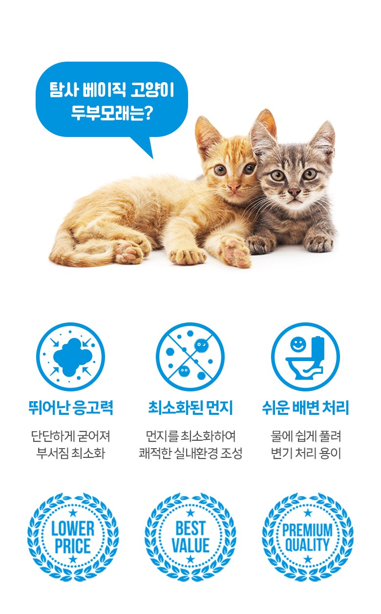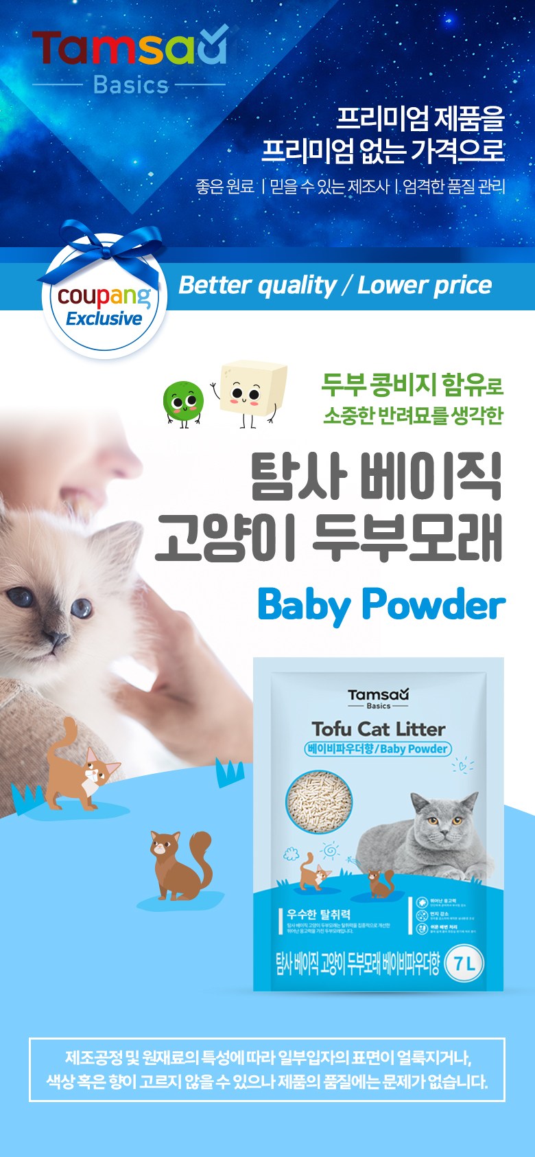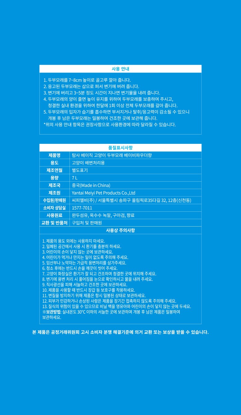 | 품명 및 모델명 | 탐사 베이직 고양이 두부모래 베이비파우더향 | 인증/허가 사항 | 해당사항없음 |