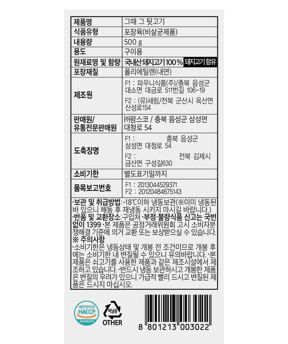 | 소비기한 또는 품질유지기한 | 소비기한(또는 유통기한) : 2026년 07월 30일 이거나 그 이후인 상품 | 세부 품목군별 표시사항 | 축산물 등급표시 : 해당 없음 / 이력번호 표시유무 : 이력번호 표시제품임 |