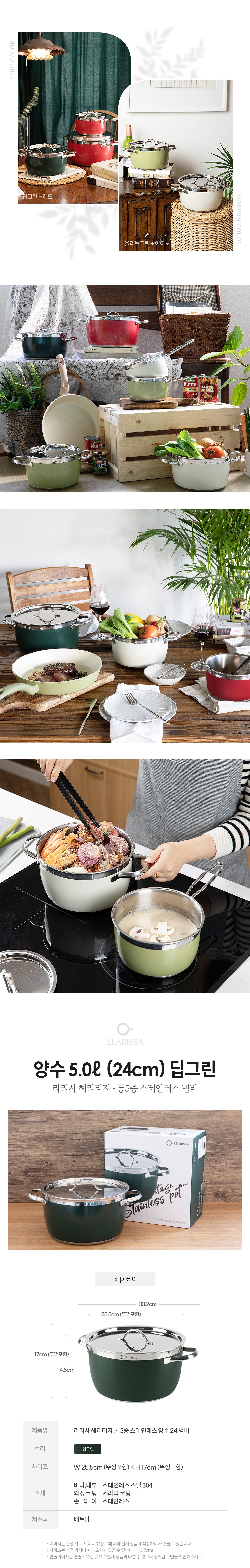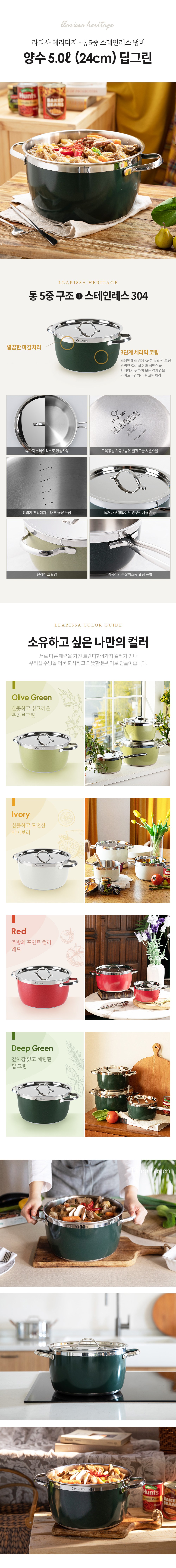 | 품명 및 모델명 | 라리사 헤리티지 통5중 스테인리스 양수냄비 24 딥그린 W494 | 재질 | 컨텐츠 참조 |