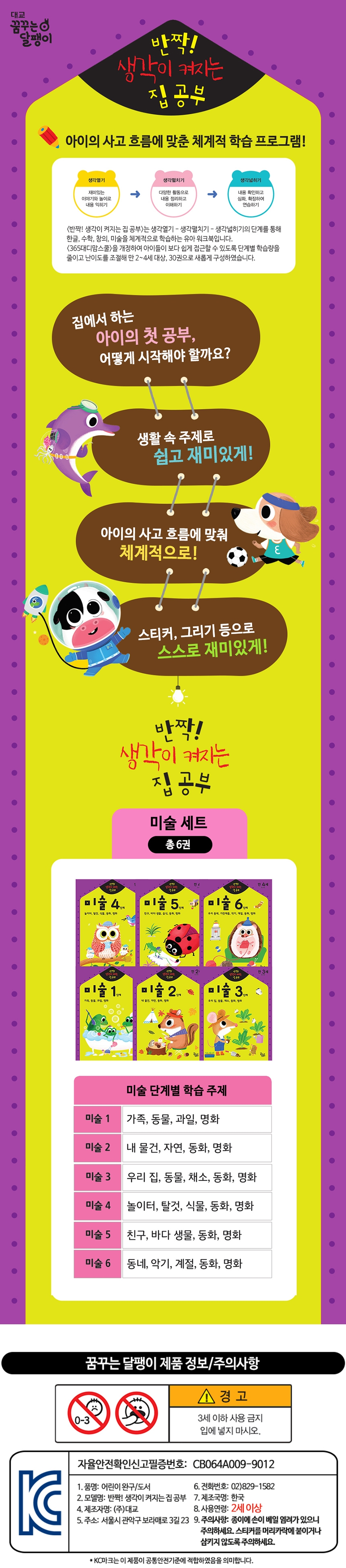 | 도서명 | 유아 홈스쿨링 워크북, 반짝 생각이 켜지는 집공부 미술 세트(전6권) | 저자, 출판사 | 알 수 없음(업체미제공), 대교 꿈꾸는달팽이 |