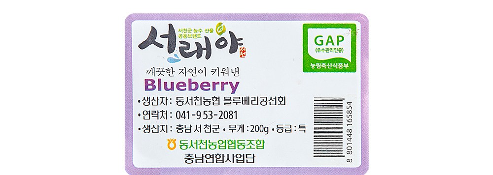 | 생산자(수입자) | 동서천농협 블루베리공선회 | 원산지 | 컨텐츠 참조 |