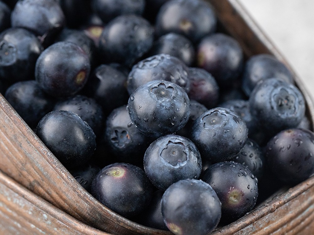 보랏빛이 선명하고 과실이 탐스러워 보기만 해도 먹음직스러운 블루베리를 소개할게요. 알알이 가득 찬 새콤달콤한 과즙이 촉촉하게 입맛을 사로잡는 과일이에요. 요거트에 곁들여 먹어도 좋고, 주스나 스무디를 만들어도 좋답니다.