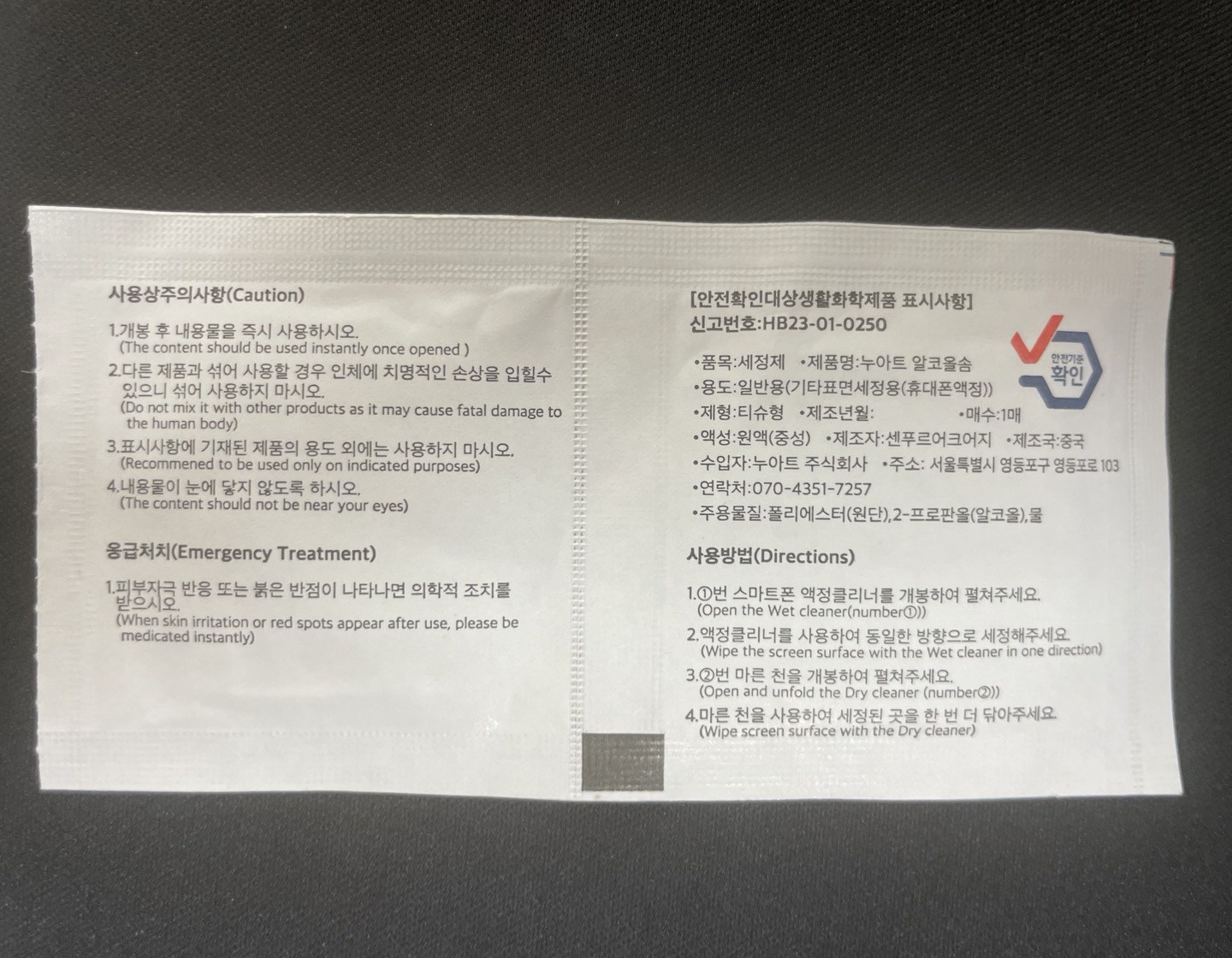 | 품명 및 모델명 | 누아트 크리스탈 TPU 변색방지 투명 젤리케이스 + 메탈철가루 방지스티커 랜덤발송 | 인증/허가 사항 | 알콜솜: HB23-01-0250 |