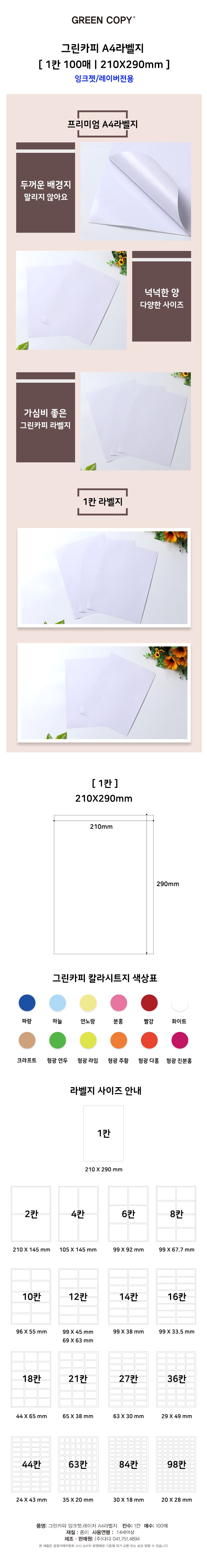 | 품명 및 모델명 | 그린카피 잉크젯,레이저 A4라벨지 100p | 인증/허가 사항 | 해당없음 |