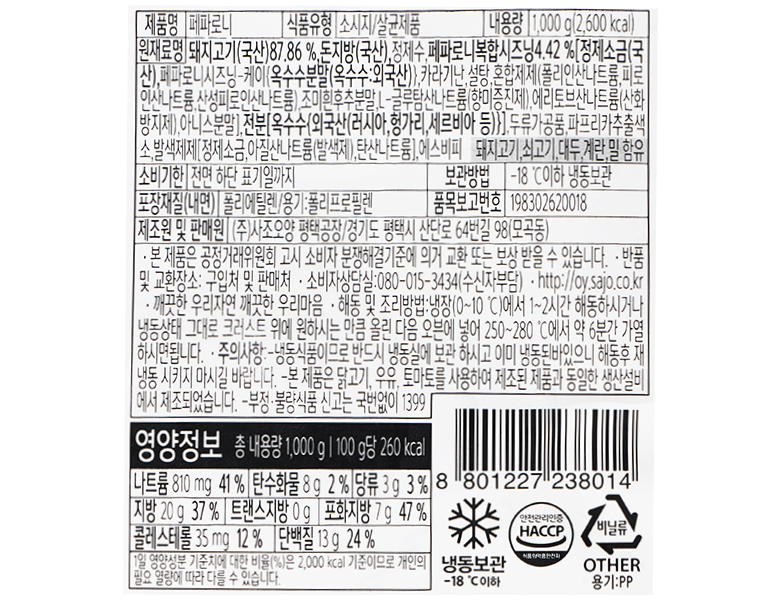 | 배송방법 | 신선/냉장/냉동 | 배송비 | 무료배송 - 도서산간 지역 배송불가 |