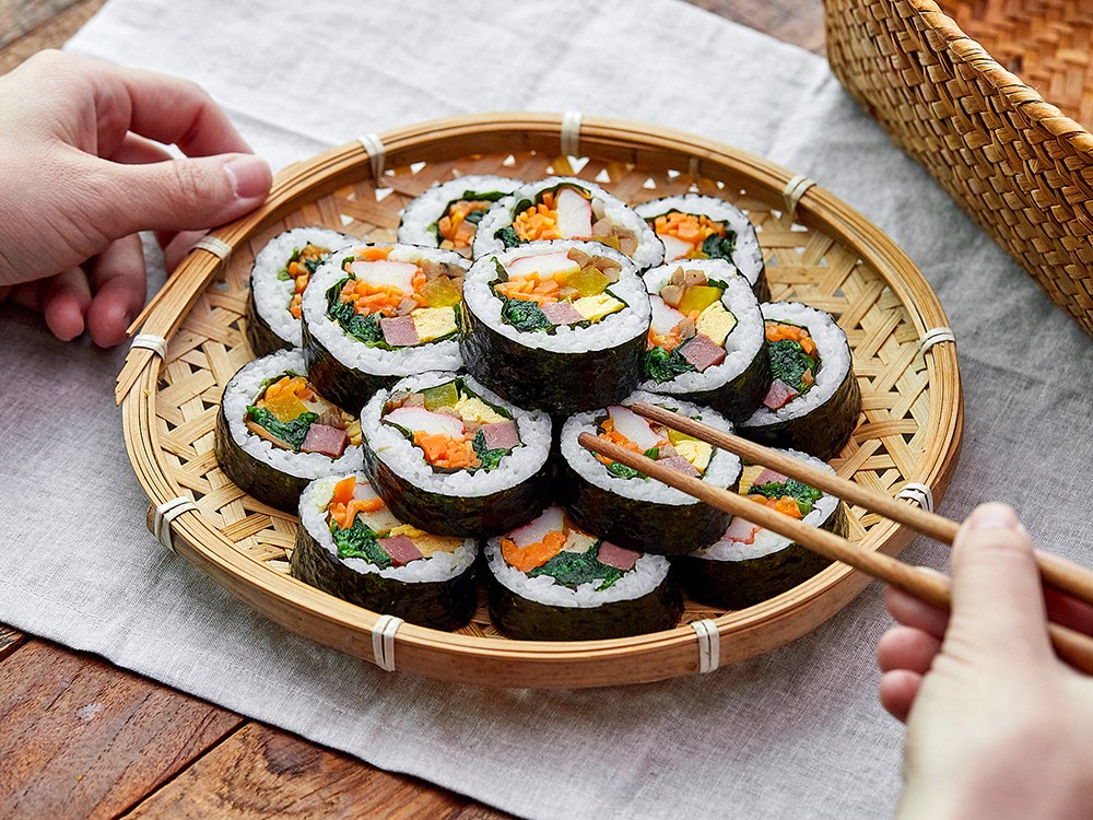 1. 햄, 우엉, 시금치 등을 준비해 김밥을 만들어보세요.